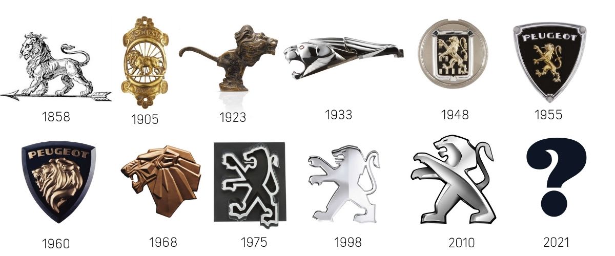 On constate que les logos Peugeot Ă©voluent aux moments des tournants importants ou bien de la sociĂ©tĂ© comme en 1973 ou bien des tournants de la firme elle mĂȘme comme 1925.